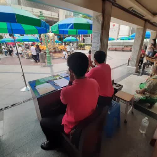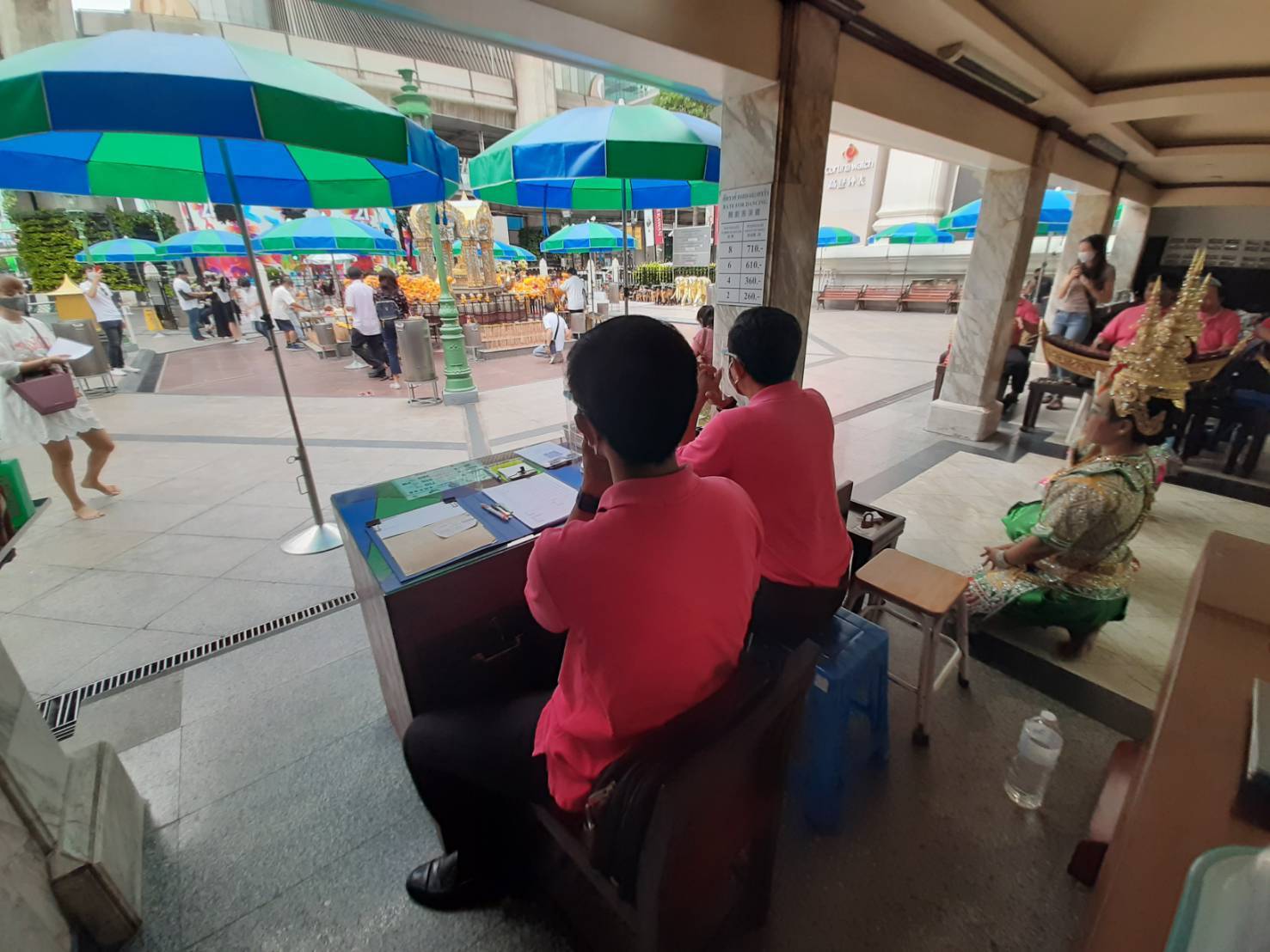 | คำอธิบาย : เจ้าหน้าที่ในการจัดรำแก้บน ที่ศาลพระพรหมเอราวัณ ราชประสงค์ |
