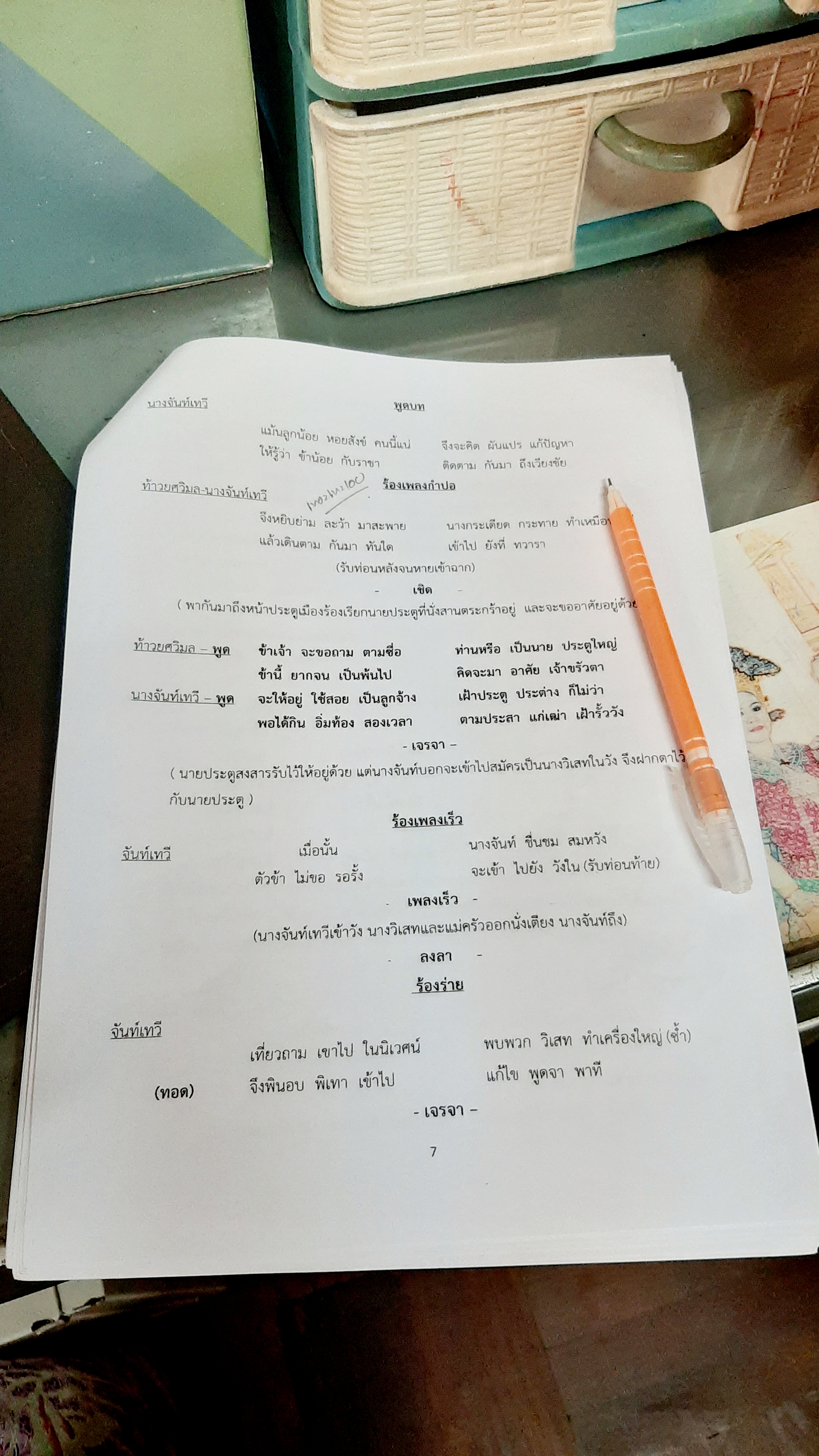 | คำอธิบาย : การทำบทละครชาตรี ของครูหมู จารุวรรณ สุขสาคร คณะละครชาตรีจงกล โปร่งน้ำใจ |