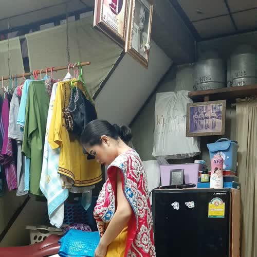 | คำอธิบาย : นางรำทำการแต่งตัวเพื่อเตรียมไปแสดงรำแก้บน |