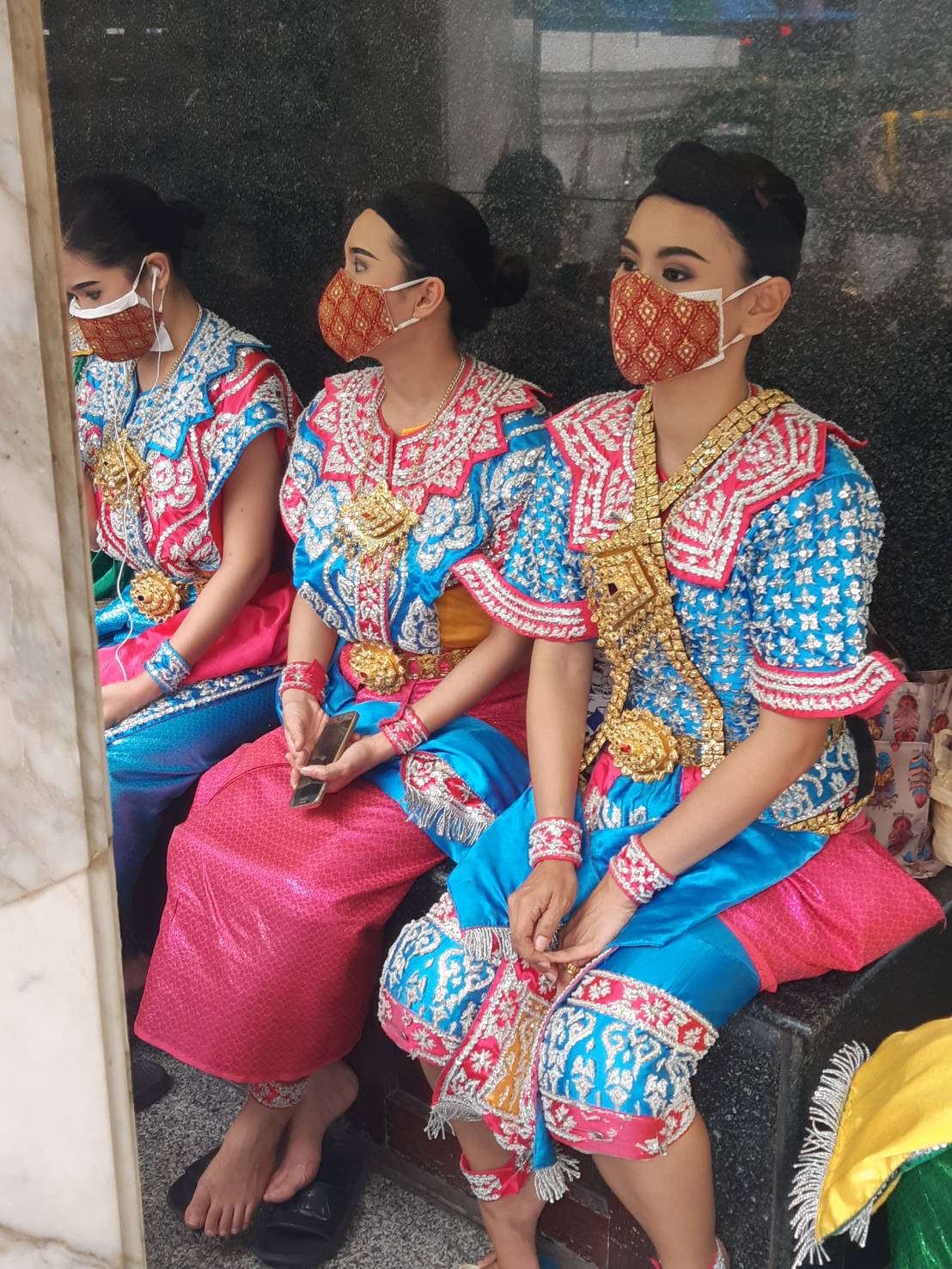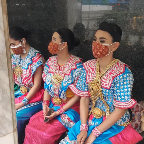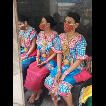 | คำอธิบาย : นางรำที่แต่งองค์ทรงเครื่องเรียบร้อย เตรียมรำถวายมือ เพื่อแก้บน แก่เจ้าภาพ |