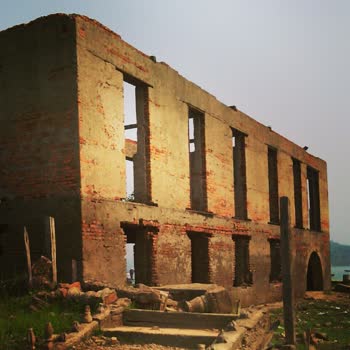 | คำอธิบาย : ส่วนหนึ่งของวัดวังก์วิเวการามที่เคยรุ่งเรืองในอดีต ก่อนที่จะมีการสร้างเขื่อนเขาแหลมในปี 2557 ทำให้ชุมชนและวัดจมลงสู่สายน้ำ |