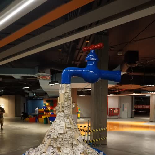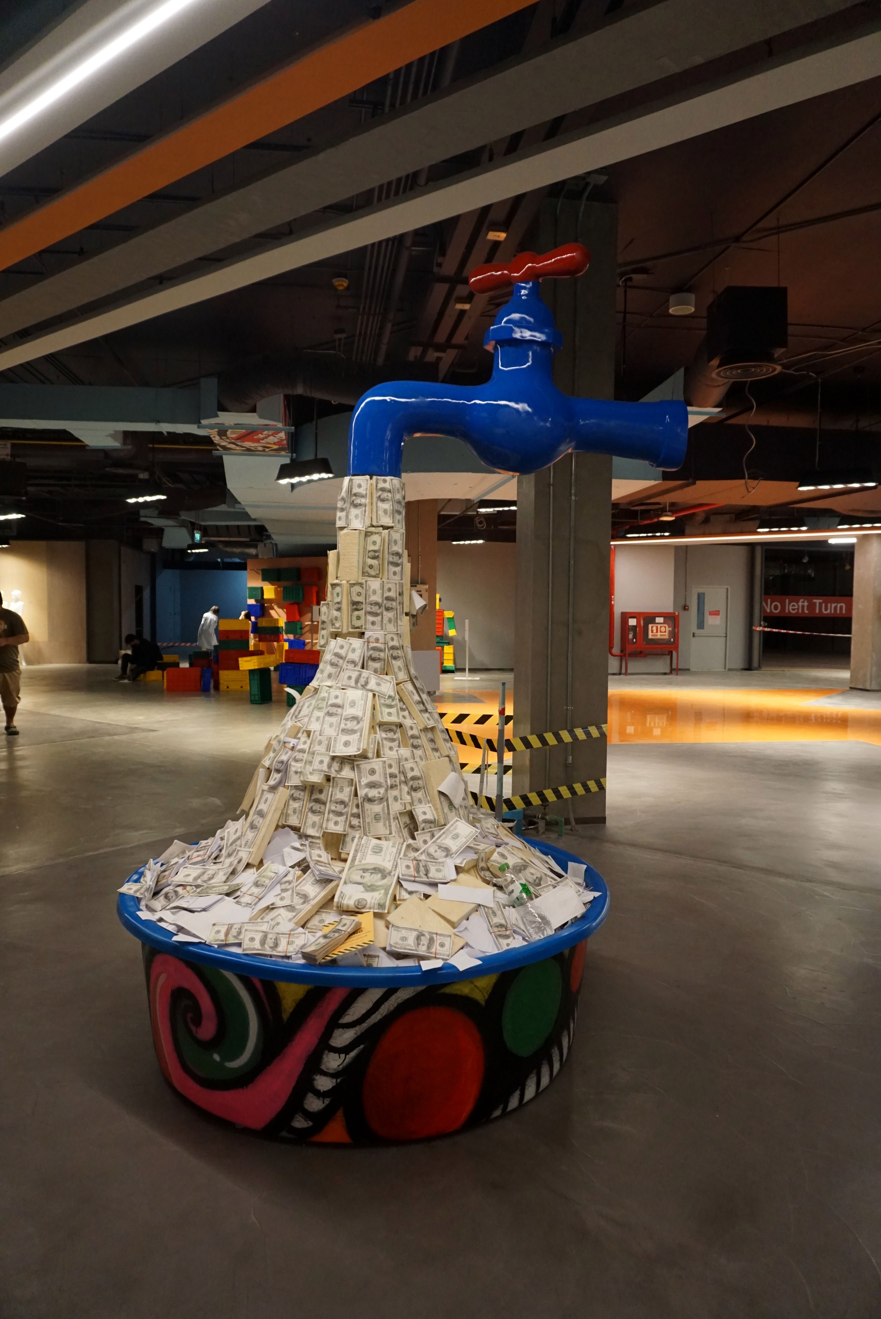 | คำอธิบาย : ก๊อกเงิน ศิลปะสะท้อนสังคมปัจจุบัน ด้วยก๊อกสีน้ำเงิน ที่มีเงินออกมาเป็นกองจัดแสดงอยู่ที่ ซีคอนสแควร์ ชั้น 2 ศรีนครินทร์ ประเวศ กรุงเทพมหานคร |