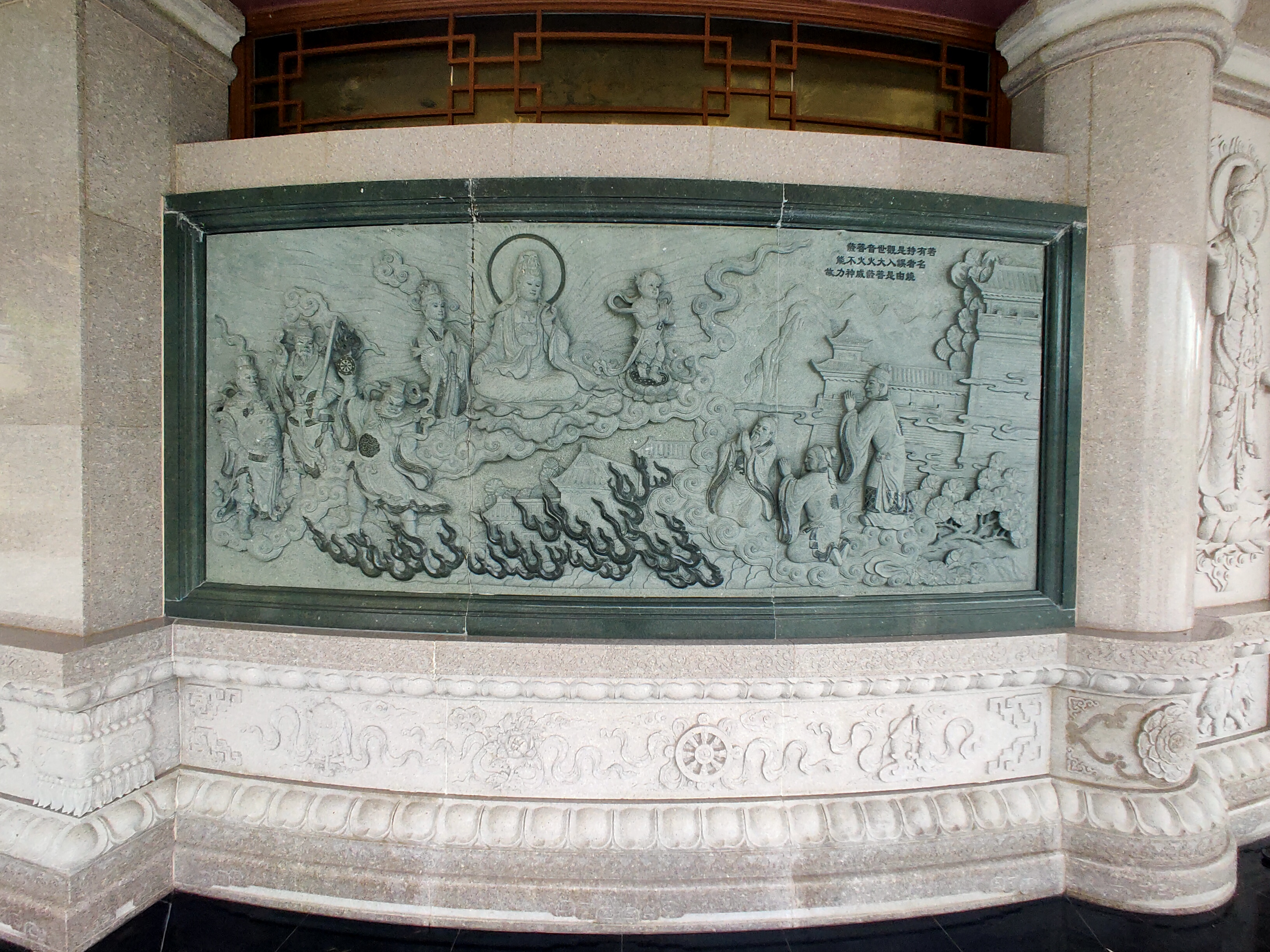 ภาพปั้นนูนต่ำหน้าวิหารพระอวโลกิเตศวรโพธิสัตว์