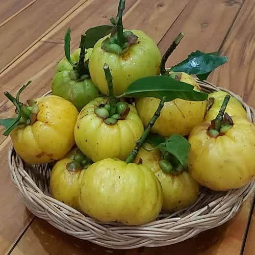| คำอธิบาย : ลูกส้มแขก ส้มแขก เป็นไม้ยืนต้นจำพวกหนึ่งในวงศ์ Guttiferae ลักษณะใบเลี้ยงเดี่ยว มีใบใหญ่เรียบและเป็นมันวาว (เป็นพืชสกุลเดียวกับมังคุด , ชะมวง , มะพูด) ผลของส้มแขกจะมีผิวเรียบ เมื่อผลแก่จะมีสีเขียว ผลสุกจะมีสีเหลือง ขนาดของผลจะใกล้เคียงผลกระท้อน เปลือกผลเป็นร่องตามแนวขั้วไปยังปลายผล มีประมาณ 8 - 10 ร่อง เนื้อแข็งมีรสเปรี้ยวจัด แต่ละผลจะมีเมล็ด 2 - 3 เมล็ด ลูกส้มแขกมีรสเปรี้ยวจัด นิยมนำมาปรุงอาหาร เช่น ใช้แกงส้ม ต้มเนื้อ ต้มปลา ใช้ใส่ในน้ำแกงขนมจีน ลูกสีเขียวนำมาใช้ยำ ยังทำเป็นน้ำส้มแขกพร้อมดื่ม ชาส้มแขก ส้มแขกแคปซูล ส้มแขกคลุกสามรส ฯลฯ |
