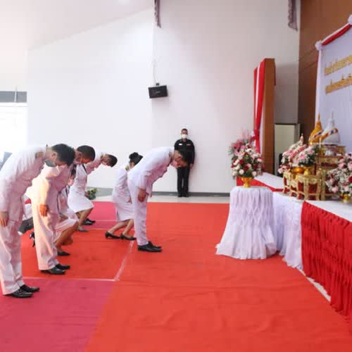 | ชื่อเรื่อง : พิธีทำบุญตักบาตรและวางพานพุ่มดอกไม้สด |