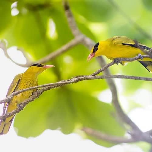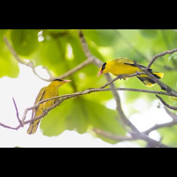 | คำอธิบาย : ขมิ้นท้ายทอยดำ Black-naped Orioleลักษณะ ลำตัวยาว 27 ซม. สีตัวส่วนใหญ่เป็นสีเหลืองสดใส มีแถบหนาสีดำคาดจากโคนปากไปจรดกันที่ท้ายทอย ปีกและหางบางส่วนเป็นสีดำ ปากแหลมแข็งแรงสีส้ม นกตัวเมียสีไม่เหลืองสดใสเหมือนนกตัวผู้ แต่จะเป็นสีเหลืองอมเขียว นกวัยอ่อนมีลายขีดสีดำบริเวณท้อง อาศัยป่าดิบแล้ง ป่าเต็งรัง สวนผลไม้ |