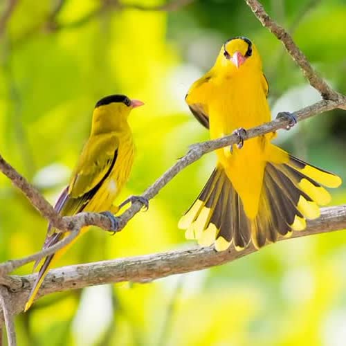 | คำอธิบาย : ขมิ้นท้ายทอยดำ Black-naped Orioleลักษณะ ลำตัวยาว 27 ซม. สีตัวส่วนใหญ่เป็นสีเหลืองสดใส มีแถบหนาสีดำคาดจากโคนปากไปจรดกันที่ท้ายทอย ปีกและหางบางส่วนเป็นสีดำ ปากแหลมแข็งแรงสีส้ม นกตัวเมียสีไม่เหลืองสดใสเหมือนนกตัวผู้ แต่จะเป็นสีเหลืองอมเขียว นกวัยอ่อนมีลายขีดสีดำบริเวณท้อง อาศัยป่าดิบแล้ง ป่าเต็งรัง สวนผลไม้ |