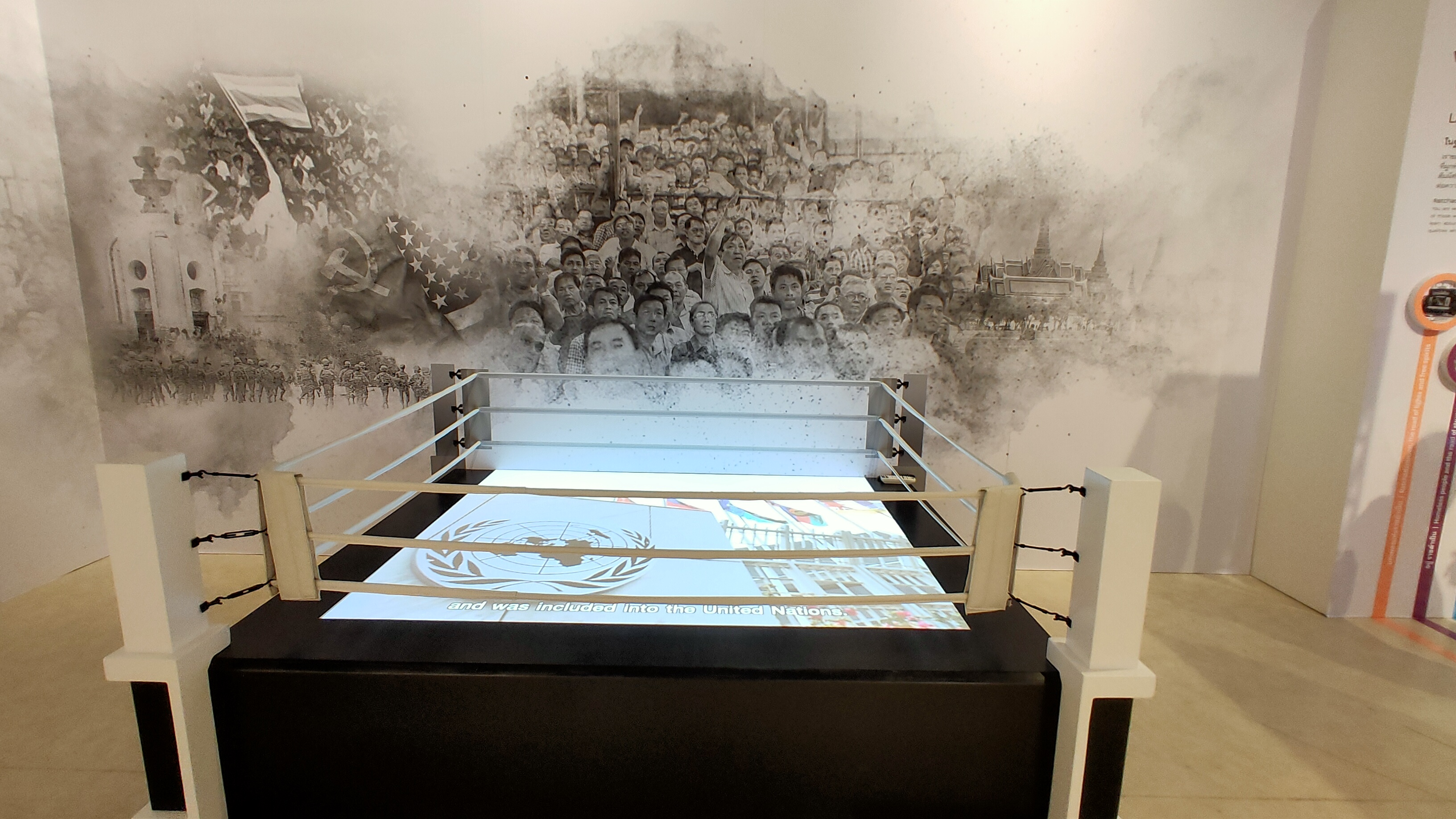 (2563). นิทรรศการ ล่องรอยราชดำเนิน: เวทีมวย (จำลอง) ฉายวีดิทัศน์บรรยากาศของเวทีมวยราชดำเนิน,