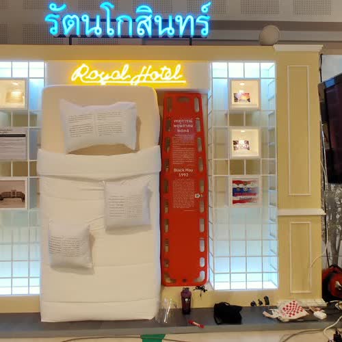 นิทรรศการ ล่องรอยราชดำเนิน: โรงแรมรัตนโกสินทร์ โรงแรมเก่าแก่บนถนนราชดำเนิน ได้รับใบอนุญาตภายใต้ ให้เผยแพร่-ดัดแปลง-โดยต้องระบุที่มาแต่ห้ามใช้เพื่อการค้าและต้องเผยแพร่งานดัดแปลงโดยใช้สัญญาอนุญาตชนิดเดียวกัน 3.0 Thailand.