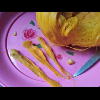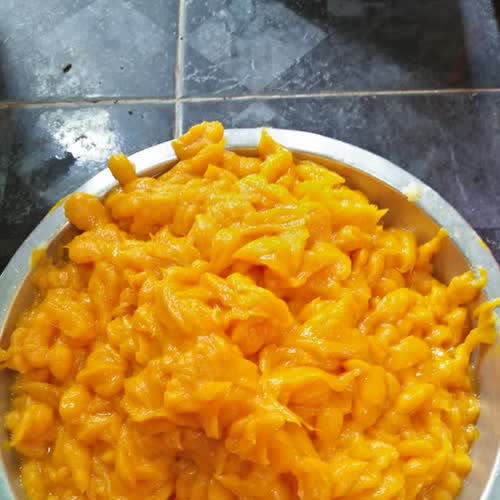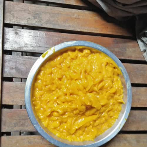 คำอธิบาย : เนื้อตาล ที่ได้จากการยีลูกตาล เป็นเนื้อแป้งสำหรับทำขนมตาล |