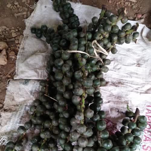 | คำอธิบาย : ลูกตาว หรือลูกต๋าว เป็นพืชดึกดำบรรพ์ตระกูลปาล์ม ลำต้นสูง ใบเป็นแพกว้าง ออกลูกเป็นทลายใหญ่ ในแต่ละผลมีเมล็ดใส ๆ เรียงชิดกันอยู่ 3 เม็ด คนจึงเรียกลูกต๋าวว่า ลูกชิด |