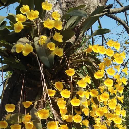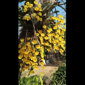 คำอธิบาย : ดอกเอื้องผึ้ง หรือดอกเอื้องเผิ้ง (ภาษาล้านนา) เป็นกล้วยไม้ที่เกาะอาศัยอยู่บนต้นไม้ กลีบดอกสีเหลืองเข้ม สวยงาม เป็นที่นิยมของสตรีล้านนา โดยเฉพาะสาวช่างฟ้อนที่จะนำไปประดับมวยผม จนกลายเป็นสัญลักษณ์ของสาวชาวเหนือ |