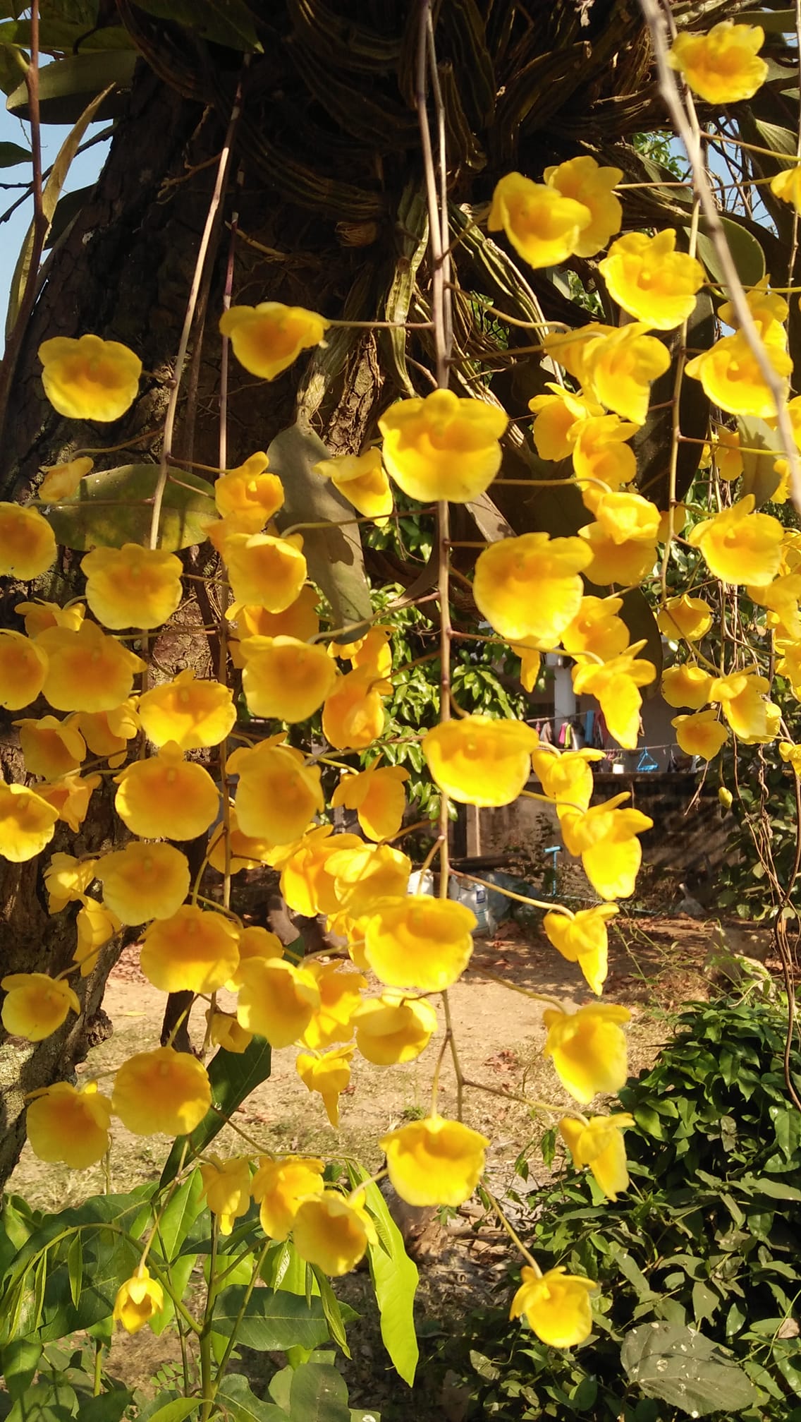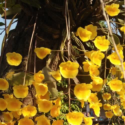 คำอธิบาย : ดอกเอื้องผึ้ง หรือดอกเอื้องเผิ้ง (ภาษาล้านนา) เป็นกล้วยไม้ที่เกาะอาศัยอยู่บนต้นไม้ กลีบดอกสีเหลืองเข้ม สวยงาม เป็นที่นิยมของสตรีล้านนา โดยเฉพาะสาวช่างฟ้อนที่จะนำไปประดับมวยผม จนกลายเป็นสัญลักษณ์ของสาวชาวเหนือ |