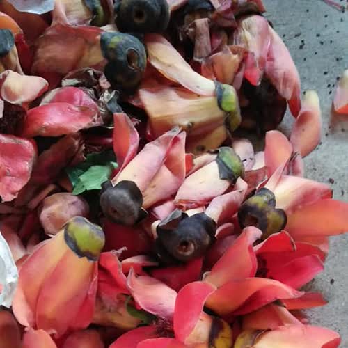 | คำอธิบาย : ดอกงิ้ว หรือดอกงิ้วแดง นำมาตากแห้ง สามารถนำไปเป็นส่วนประกอบอาหารได้ ในตำหรับอาหารล้านนาหลายเมนู เช่น น้ำเงี้ยว แกงแค แกงสาแล ฯ |