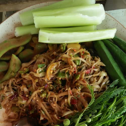 คำอธิบาย : ส้มตำใส่น้ำปู หรือต๋ำส้มน้ำปู๋ เป็นเมนูอาหารพื้นถิ่นของทางภาคเหนือ |