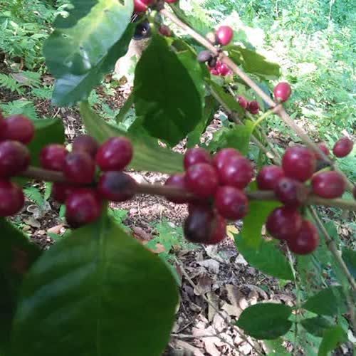 คำอธิบาย : ต้นกาแฟ และเมล็ดกาแฟสด |
