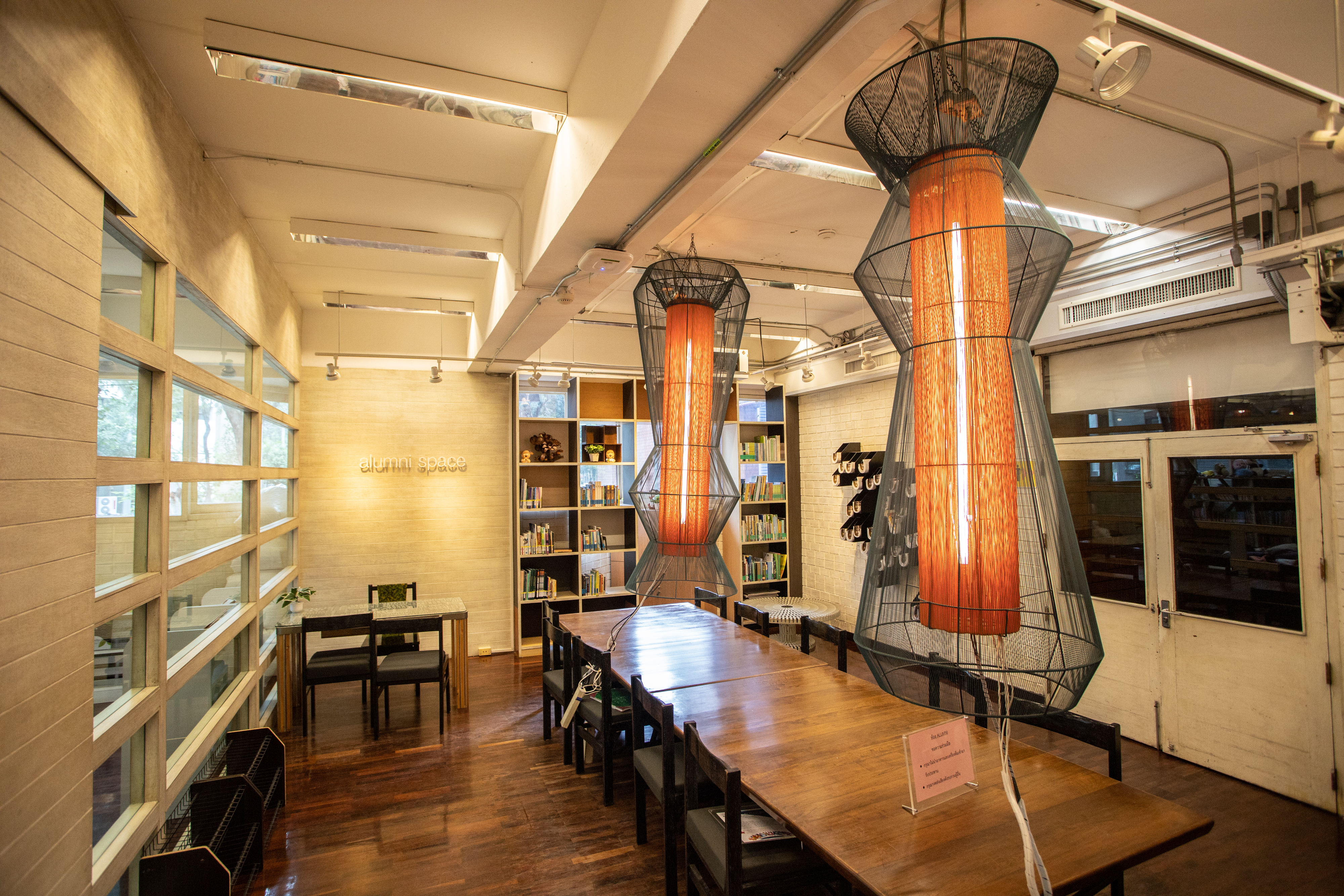 | คำสำคัญ : ห้องศิษย์เก่า, โคมไฟ, ห้องสมุด Eco-Library, ห้องสมุด, โคมไฟจากเส้นด้าย, Alumni Space, ชั้นหนังสือ, พื้นที่นั่งอ่าน, โคมไฟตกแต่ง, สำนักหอสมุด มหาวิทยาลัยเกษตรศาสตร์, โคมไฟเศษด้าย |
