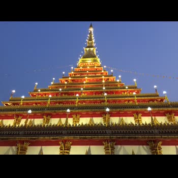 | คำอธิบาย : วัดหนองแวง (พระมหาธาตุแก่นนคร) ตั้งอยู่ที่ถนนกลางเมือง ริมบึงแก่นนคร อำเภอเมือง จังหวัดขอนแก่น ภายในวัดหนองแวงเมืองเก่าซึ่งเป็นพระอารามหลวง มีพระมหาธาตุแก่นนคร หรือ พระธาตุเก้าชั้น ฐานสี่เหลี่ยมกว้างด้านละ50 เมตร เรือนยอดทรงเจดีย์จำลองแบบจากพระธาตุขามแก่น |