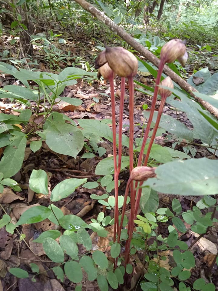 | คำอธิบาย : ดอกดินแดง ดอกดินม่วง หญ้าดอกขอปากจะเข้ เป็นพืชเบียนขนาดเล็ก ไม่มีใบ มีชีวิตอยู่แบบกาฝาก อาศัยเกาะอยู่กับรากหญ้าคา หรือรากไม้ไผ่ใต้ดิน ก้านดอกมีสีขาวนวล ดอกโผล่มาเหนือดิน กลีบดอกเป็นหลอด สีม่วงเข้ม ตอนปลายเป็นแฉก ในดอกมีสารสีดำ สามารถทำขนมได้ เรียกว่า ขนมดอกดิน |