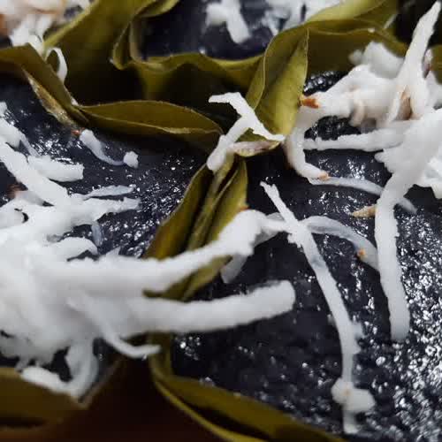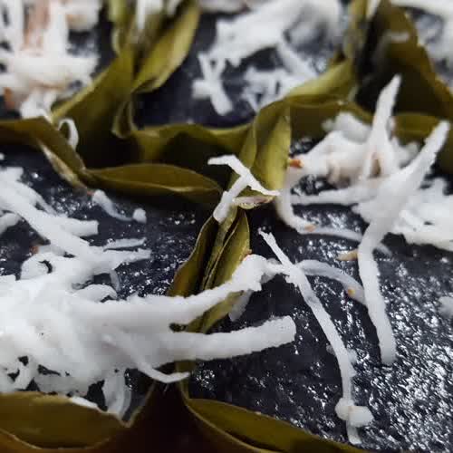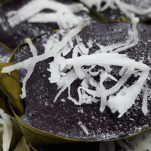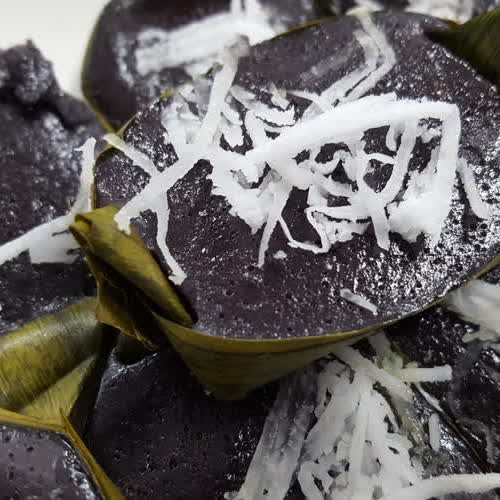 | คำอธิบาย : ขนมดอกดิน เป็นขนมไทยโบราณที่ใช้น้ำที่คั้นจาก ดอกดิน หรือดอกข้าวก่ำ มาเป็นส่วนผสม ให้สารสีม่วงเข้มออกดำ และมีความเงา มีกลิ่นของดอกดินหอมอ่อน ๆ |