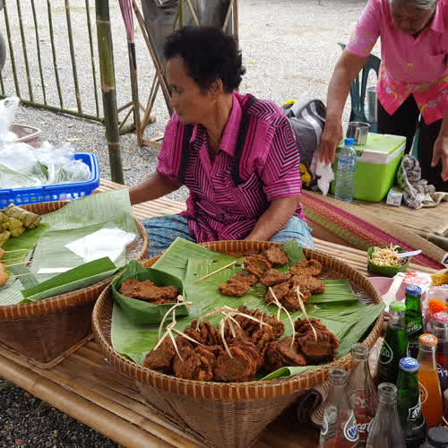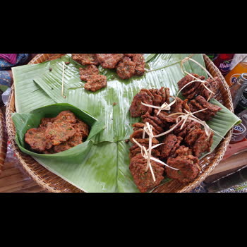 | คำอธิบาย : การขายปลาเห็ด หรือทอดมันปลากราย ในตลาดย้อนยุคโบราณ ณ บริเวณลานต้นโพธิ์ หน้าวัดศรีสุวรรณ (วัดเขื่อนแดง) ในงาน ตามรอยพระพุทธเจ้าหลวงเสด็จประพาสต้น มณฑลนครสวรรค์ |