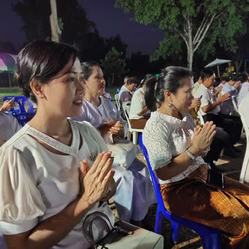 | คำอธิบาย : ชาวอำเภอปรางค์กู่ จังหวัดศรีสะเกษ ร่วมทำวัตรเย็น พิธีเจริญพระพุทธมนต์เย็น ฟังธรรม ณ ปราสาทปรางค์กู่ เนื่องในงานเฉลิมฉลอง 238 ปี จังหวัดศรีสะเกษ |