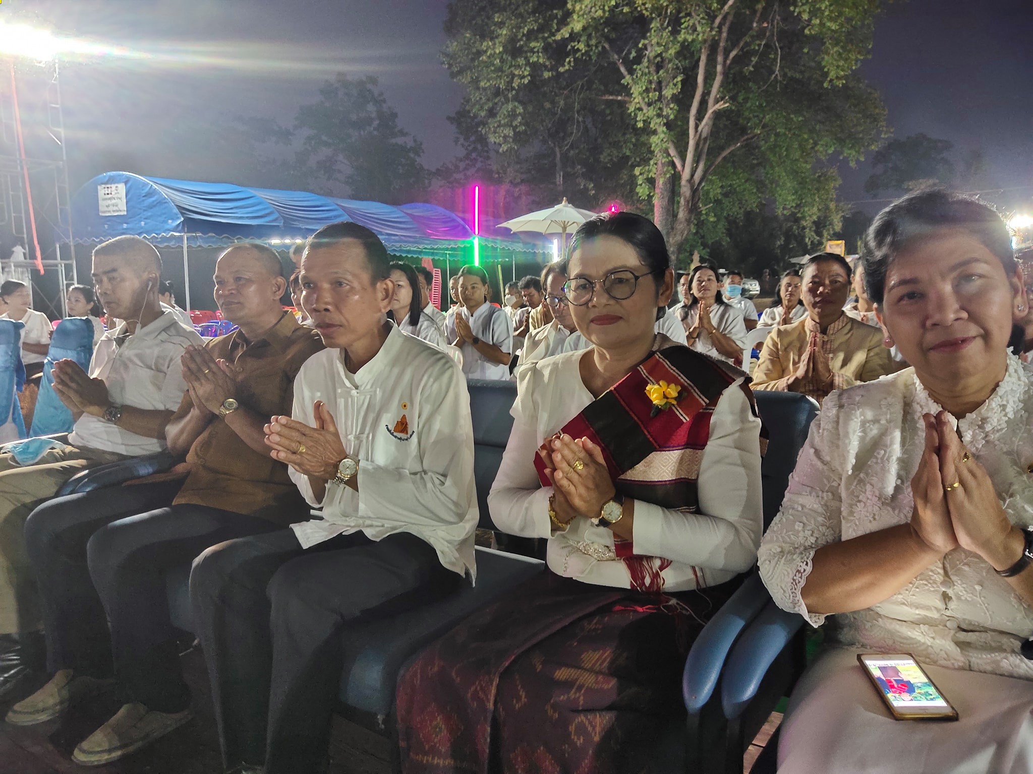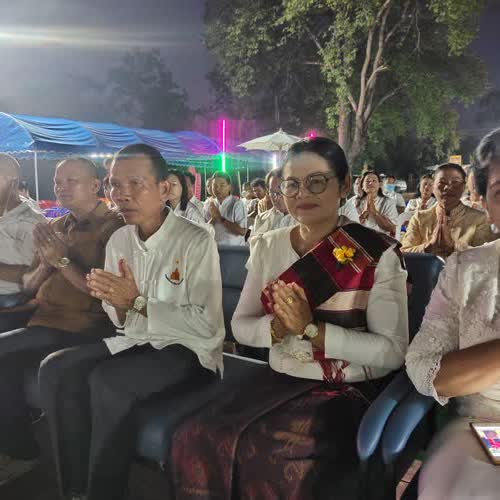 | คำอธิบาย : ชาวอำเภอปรางค์กู่ จังหวัดศรีสะเกษ ร่วมทำวัตรเย็น พิธีเจริญพระพุทธมนต์เย็น ฟังธรรม ณ ปราสาทปรางค์กู่ เนื่องในงานเฉลิมฉลอง 238 ปี จังหวัดศรีสะเกษ |