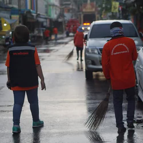 (2563). "การฉีดน้ำล้างทำความสะอาดถนน".