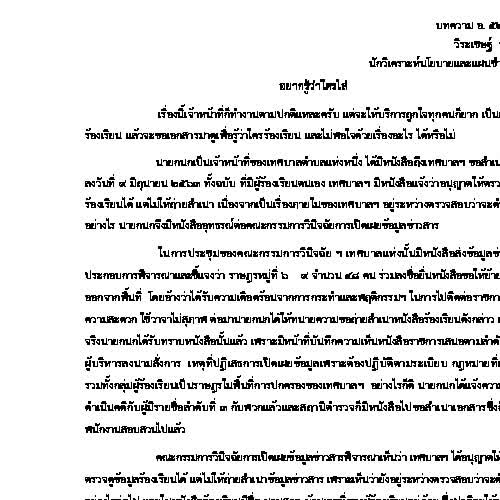 | คำอธิบาย : บทความ ความรู้เกี่ยวกับพระราชบัญญัติข่าวสารของราชการ พ.ศ.2540 เปิดเผยเป็นหลัก ปกปิดเป็นข้อยกเว้น |