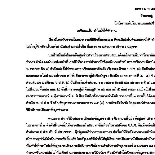 | คำอธิบาย : บทความ ความรู้เกี่ยวกับพระราชบัญญัติข่าวสารของราชการ พ.ศ.2540 เปิดเผยเป็นหลัก ปกปิดเป็นข้อยกเว้น |