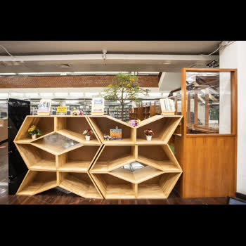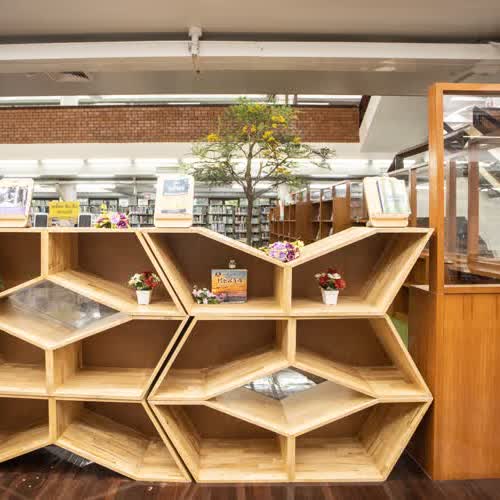 | คำสำคัญ : สำนักหอสมุด มหาวิทยาลัยเกษตรศาสตร์, อาคารช่วงเกษตรศิลปการ, ชั้นหนังสือรังผึ้ง, ห้องสมุด, ชั้นวางของรังผึ้ง, ชั้นจัดแสดงนิทรรศการ |