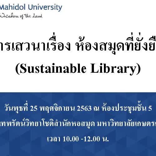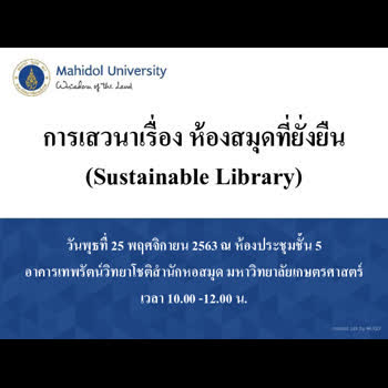 | ชื่อเรื่อง : การเสวนา เรื่อง ห้องสมุดที่ยั่งยืน (Sustainable Library) |
