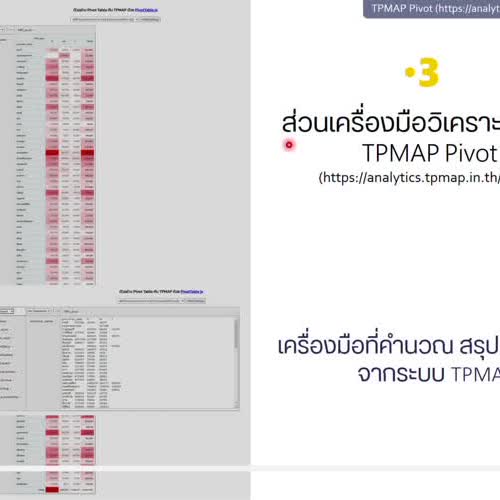 TPMAP ตอนที่ 4 TPMAP Pivot : การนำข้อมูล TPMAP มาวิเคราะห์ตามเงื่อนไขเบื้องต้น แบบ ตาราง ได้รับใบอนุญาตภายใต้ ให้เผยแพร่-โดยต้องระบุที่มาแต่ห้ามดัดแปลงและห้ามใช้เพื่อการค้า 3.0 Thailand.