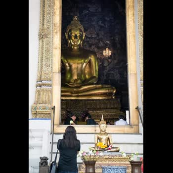 | คำอธิบาย : พระศรีศากยมุนี..พระประธานในพระวิหารหลวงวัดสุทัศนเทพวรารามพระศรีศากยมุนี เป็นพระประธานในพระวิหารหลวงวัดสุทัศนเทพวราราม หล่อด้วยโลหะสัมฤทธิ์ หน้าตักกว้าง 3 วา 1 คืบ นับเป็นพระพุทธรูปหล่อที่ใหญ่ที่สุดในประเทศไทย ในยุคก่อน 25 พุทธศตวรรษ เดิมเป็นพระประธานอยู่ในพระวิหารหลวง วัดมหาธาตุ สุโขทัย สร้างสมัยราชวงศ์พระร่วงแห่งกรุงสุโขทัย |