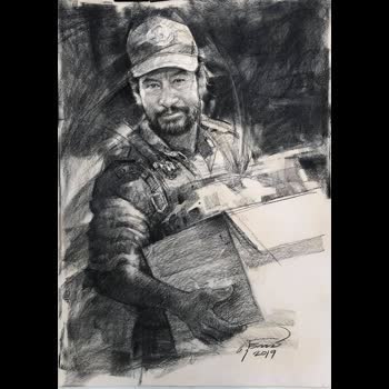 | คำอธิบาย : บิณฑ์ บรรลือฤทธิ์จิตอาสา ศิลปิน นักแสดง นักสังคมสงเคราะห์เทคนิค เกรยองบนกระดาษอาจารย์สุวิทย์ ใจป้อมกลุ่มศิลปินสองแผ่นดิน |