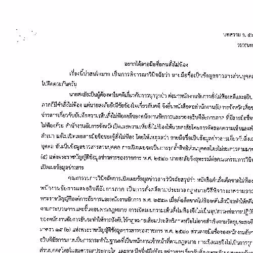 อยากได้ลายมือชื่อคนสั่งไม่ฟ้อง