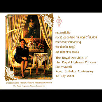 "แผ่นพับพระกรณียกิจพระเจ้าวรวงศ์เธอ พระองค์เจ้าโสมสวลี พระวรราชาทินัดดามาตุ วันคล้ายวันประสูติ ๑๓ กรกฎาคม ๒๕๔๔".