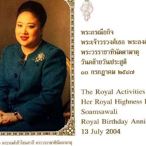รีวิว : แผ่นพับพระกรณียกิจพระเจ้าวรวงศ์เธอ พระองค์เจ้าโสมสวลีพระวรราชาทินัดดามาตุ วันคล้ายวันประสูติ ๑๓ กรกฎาคม ๒๕๔๗