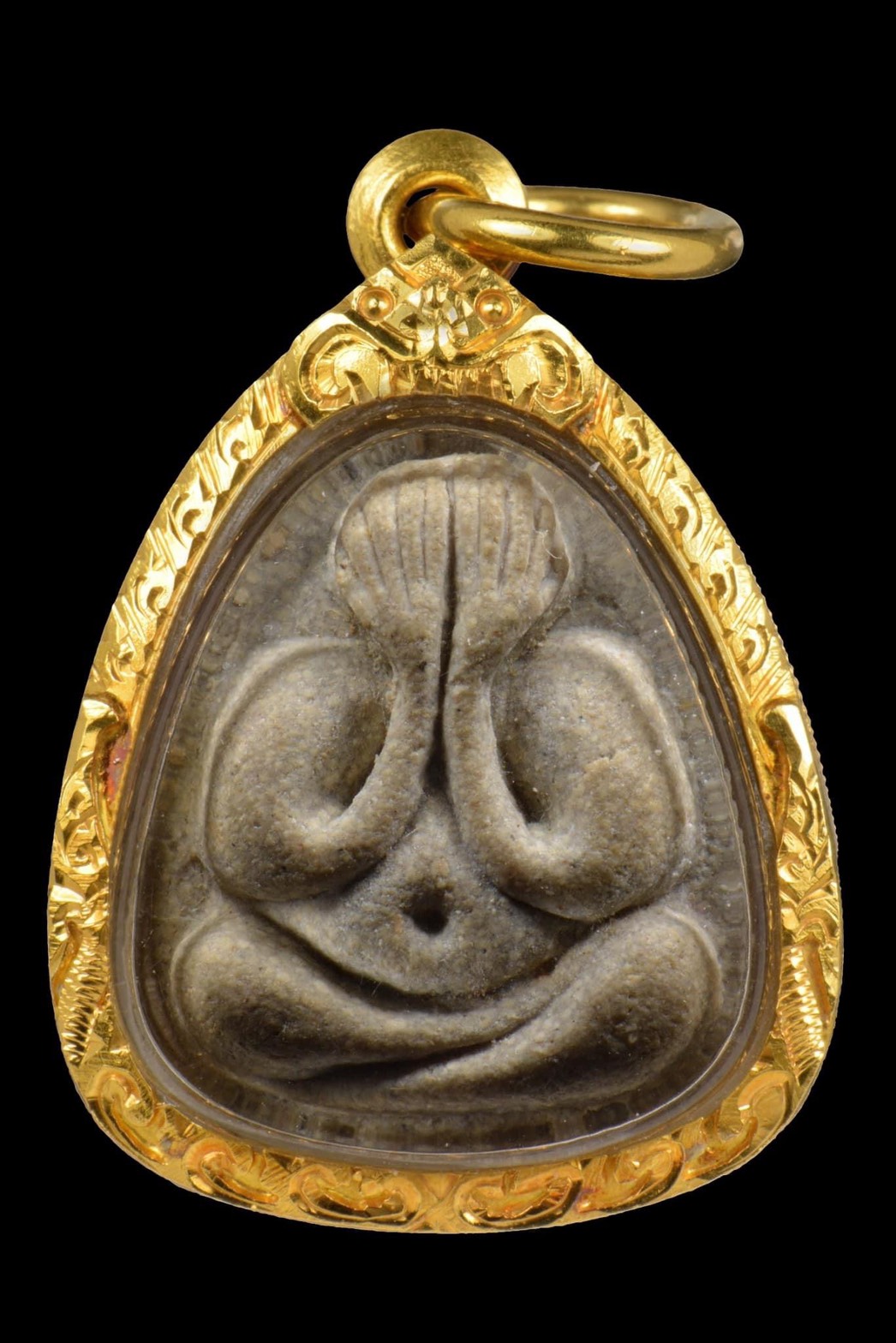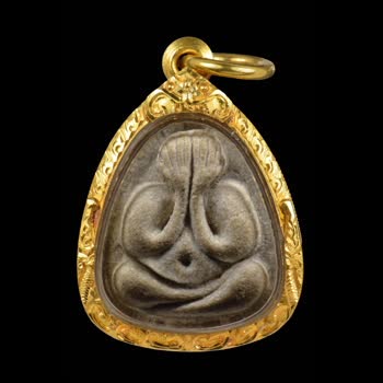 "พระปิดตามหาเสน่ห์ ปีที่สร้าง: พ.ศ. 2518 (เนื้อเกสร) กรอบเลี่ยมทอง องค์ที่ 2".