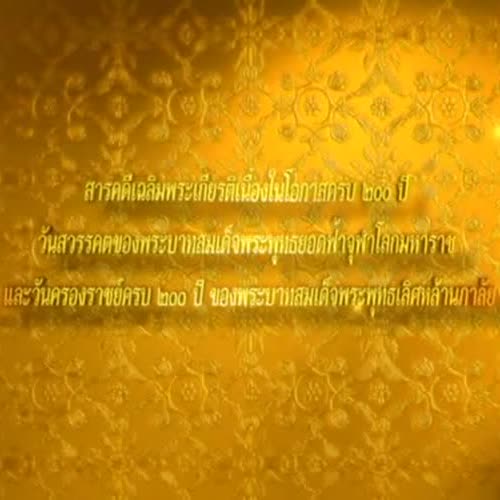 | ชื่อเรื่อง : สารคดีเฉลิมพระเกียรติเนื่องในโอกาศวันครองราชย์ครบ ๒๐๐ ปี ของพระบาทสมเด็จพระพุทธเลิศหล้านภาลัย ตอน การทะนุบำรุงพระพุทธศาสนา สืบพระศาสนาลังกาทวีป |