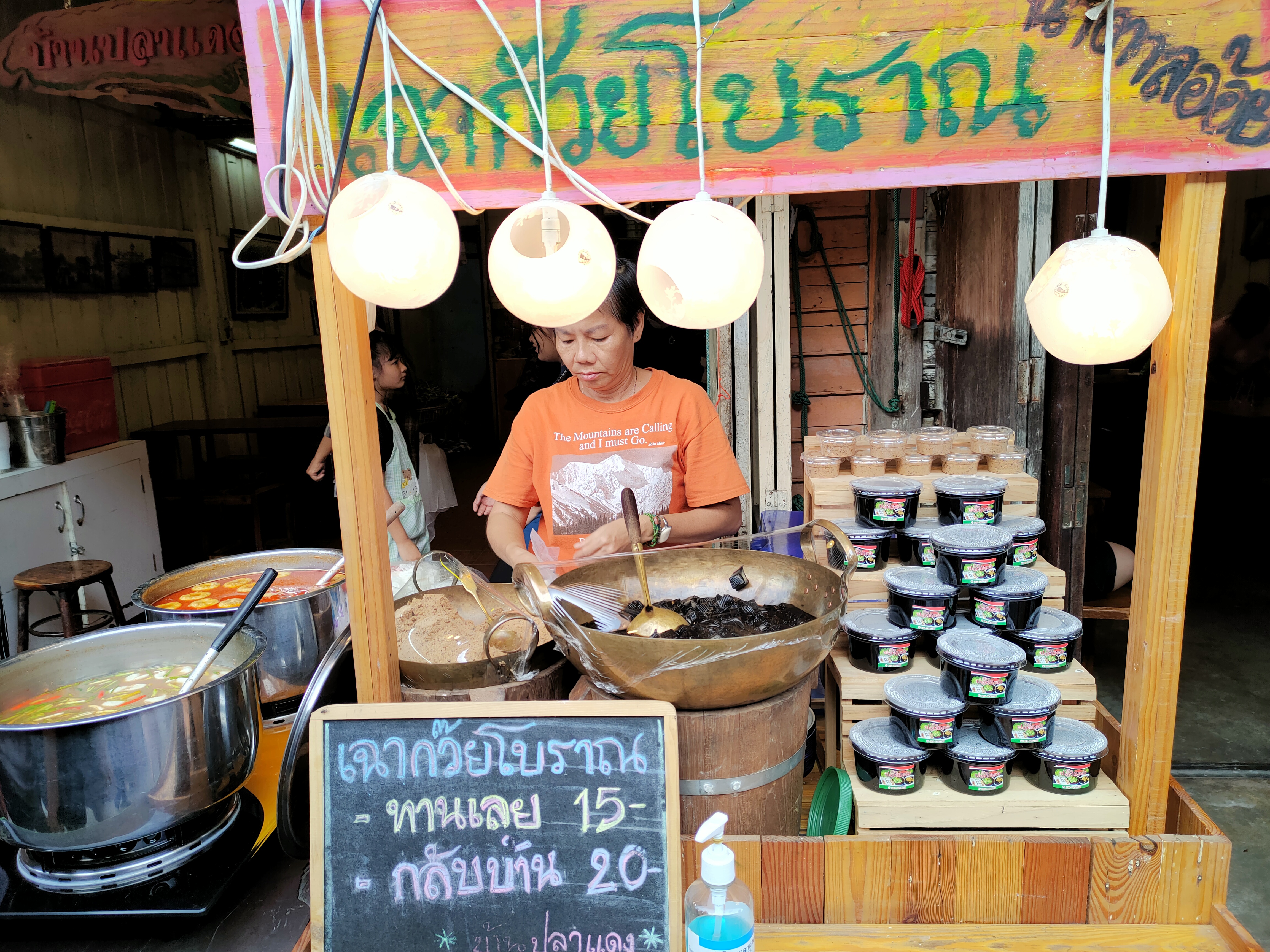 | คำอธิบาย : ของกินที่ถนนคนเดิน ตลาดเก่าบ้านสะแกกรัง ตรอกโรงยา จังหวัดอุทัยธานี |