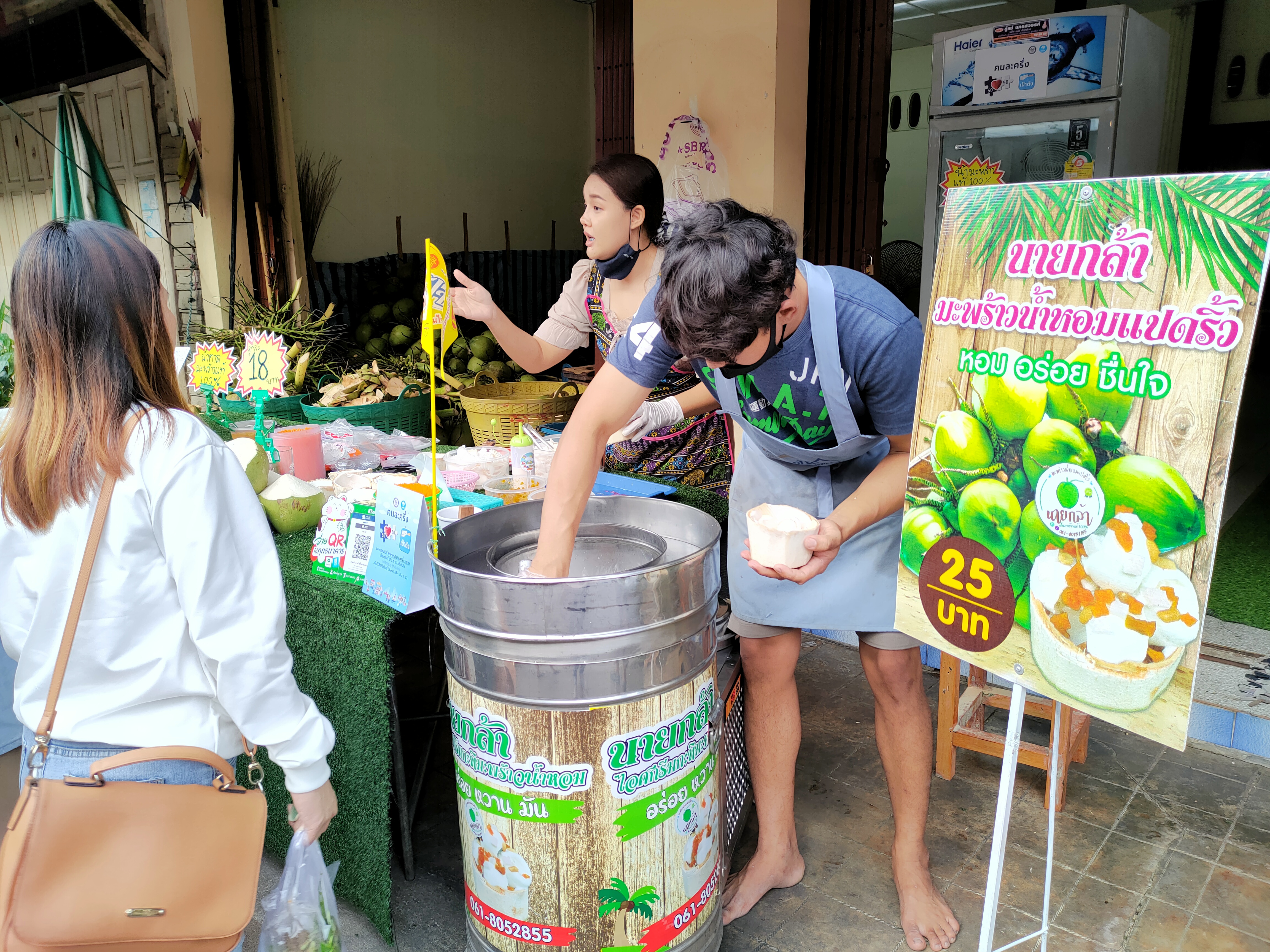 | คำอธิบาย : ของกินที่ถนนคนเดิน ตลาดเก่าบ้านสะแกกรัง ตรอกโรงยา จังหวัดอุทัยธานี |