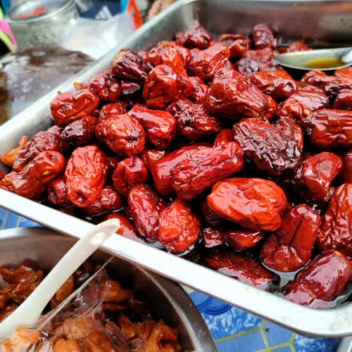 | คำอธิบาย : ของกินที่ถนนคนเดิน ตลาดเก่าบ้านสะแกกรัง ตรอกโรงยา จังหวัดอุทัยธานี |