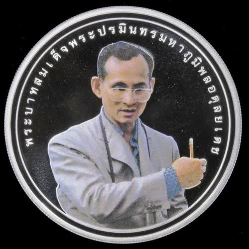 เหรียญในหลวงรัชกาลที่ 9 ที่ระลึกรางวัลความสำเร็จสูงสุดด้านการพัฒนามนุษย์ (UNDP) ปี 2549 เนื้อเงินบริสุทธิ์ 99.9% ขัดเงาและลงสี ได้รับใบอนุญาตภายใต้ ให้เผยแพร่-โดยต้องระบุที่มาแต่ห้ามดัดแปลงและห้ามใช้เพื่อการค้า 3.0 Thailand.