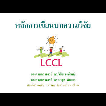 | คำสำคัญ : หลักการเขียนบทความวิจัย, บัณฑิตวิทยาลัย มศว.มศว., LCCL Books, การพัฒนาผู้เรียน |
