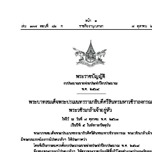 | คำสำคัญ : พระราชบัญญัติงบประมาณรายจ่ายประจำปีงบประมาณ, พระราชบัญญัติ, พ.ร.บ., กฎหมาย, งบประมาณ, ราชกิจจานุเบกษา, รายจ่าย |
