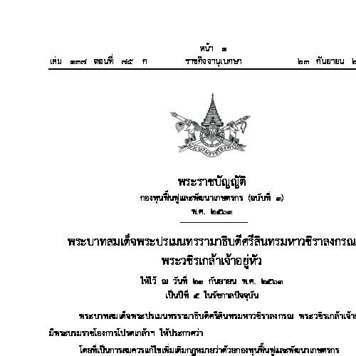| คำสำคัญ : กฎหมาย, ราชกิจจานุเบกษา, พระราชบัญญัติกองทุนฟื้นฟูและพัฒนาเกษตรกร (ฉบับที่ ๓), พระราชบัญญัติ, พ.ร.บ. |