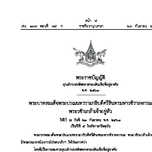 พระราชบัญญัติยุบเลิกบรรษัทตลาดรองสินเชื่อที่อยู่อาศัย พ.ศ. ๒๕๖๓ ได้รับใบอนุญาตภายใต้ ให้เผยแพร่-โดยต้องระบุที่มาแต่ห้ามดัดแปลงและห้ามใช้เพื่อการค้า 3.0 Thailand.