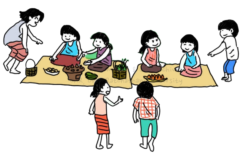| คำอธิบาย : การเล่นเฮือนน้อยหรือการเล่นขายของ การละเล่นกลางแจ้งของเด็กอีสาน |