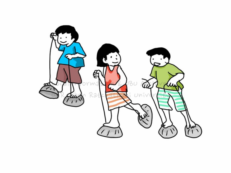 | คำอธิบาย : การเล่นหย่างกะโป๋ หรือหมากกุ๊บกั๊บ การเล่นเดินกะลา เป็นการละเล่นกลางแจ้งของเด็กอีสาน |